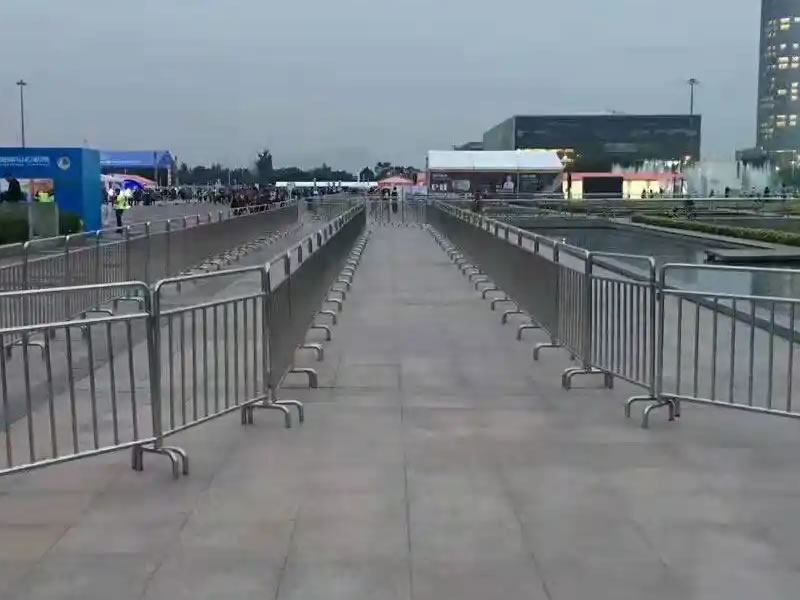Crowd control barriers are portable steel barricades designed to manage pedestrian flow and ensure public safety. Made from galvanized or powder-coated steel, they feature interlocking hooks and flat or bridge feet for stability. Panels typically measure 2.0–2.5 m in length and 1.0–1.2 m in height with tube frames Ø25–50 mm. Used in events, construction zones, parades, and traffic control, these barriers provide durable perimeter management, easy installation, and reusability for temporary or permanent crowd control needs.